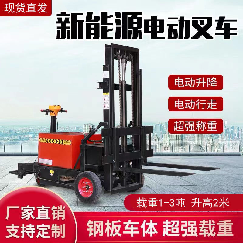 科尔沁区小型电动叉车1吨站驾式2吨液压升高铲车全自动仓储堆高车